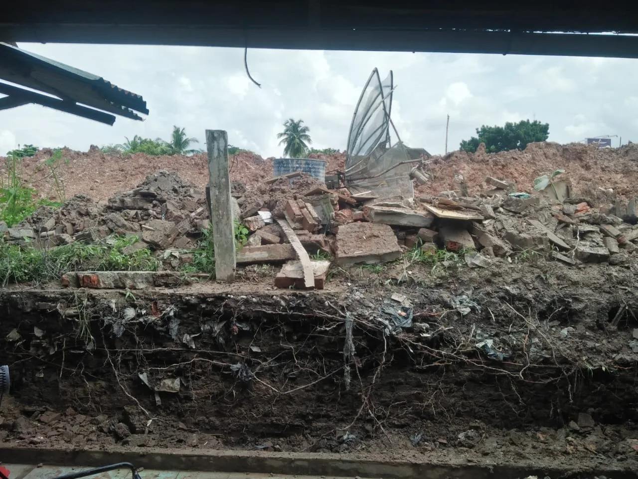 “Tanah yang ditimbun itu, awalnya di sana. Kami pernah bilang kenapa gak dipasang saluran airnya dulu? Tau- taunya pas kita pergi salat magrib, mereka dorong tanahnya ke sini,” kata Isak,