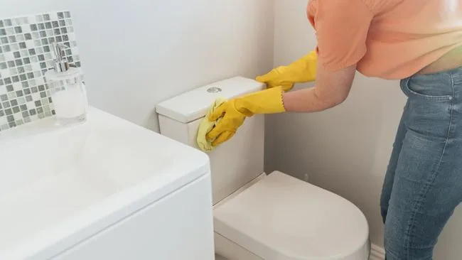 1. Bersihkan kamar mandi dengan cairan pembersih