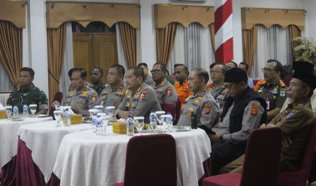 Para Pejabat TNI dan Polri Mematangkan Rencana Evakuasi di Pendopo Bupati Merangin