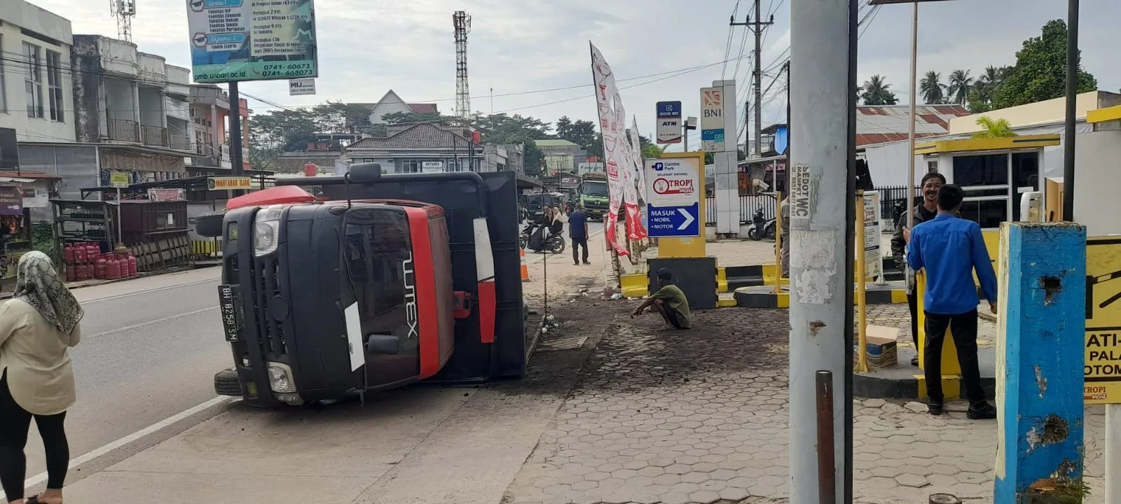 Patah As! Truk Batu Bara Terguling di Depan Tropi Mart Mendalo
