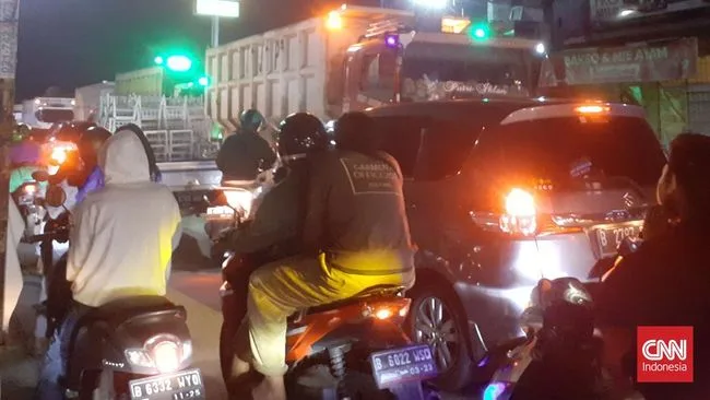 Berdasarkan pantauan CNNIndonesia.com di lokasi, pengerjaan proyek tersebut memakan setengah badan jalan. Walhasil, kendaraan yang melintas jadi terganggu hingga membuat lalu lintas tersendat.