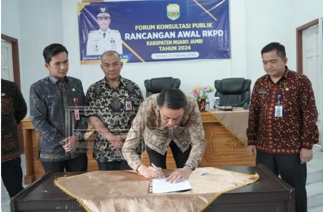 Muarojambi – Pj Bupati Muarojambi Bachyuni Deliansyah,SH.MH membuka secara resmi acara Forum Konsultasi publik untuk rencana awal RKPD 2024 kabupaten Muarojambi bertempat diruang pola kantor Bapeda Muarojambi, Kamis, 23 Februari 2023.