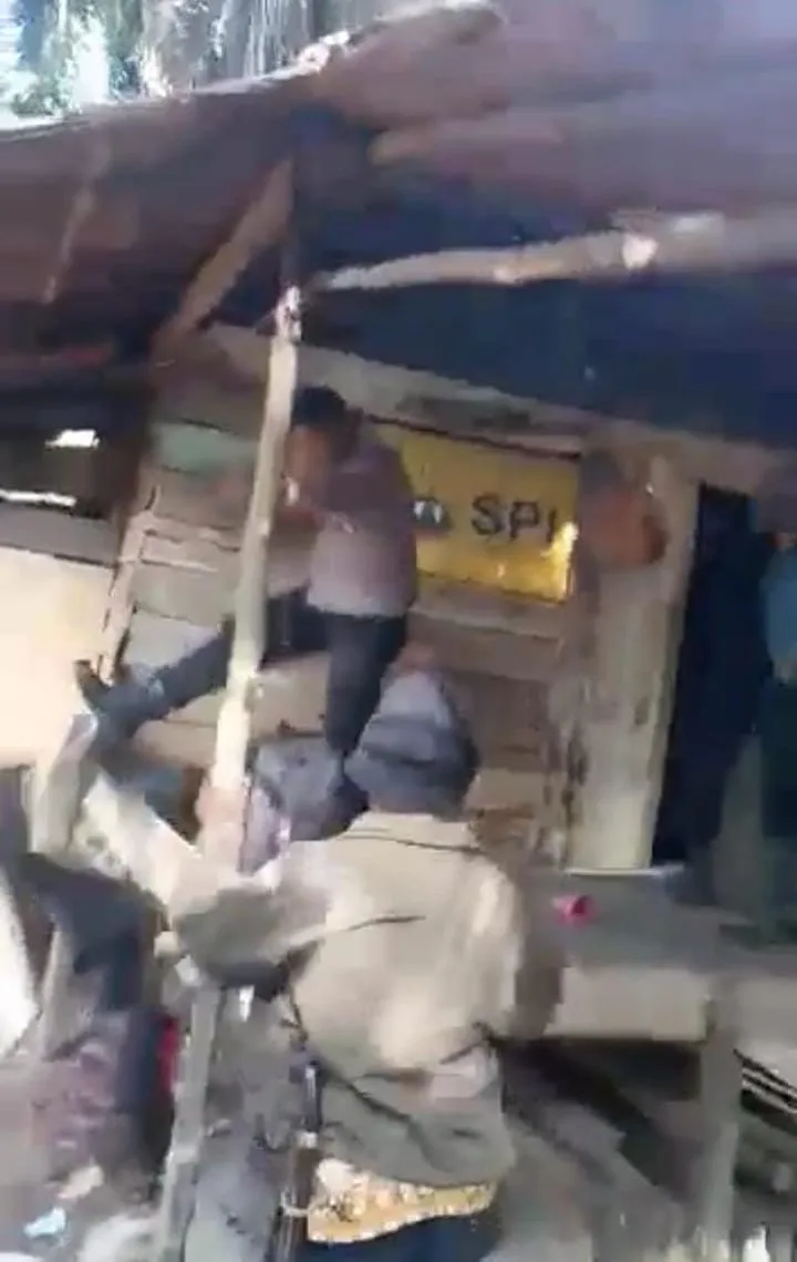 Tidak berhenti sampai di situ, Saipudin yang sudah lemah ditarik dan dilempar dari atas pondoknya ke bawah oleh sekuriti PT Kaswari Unggul.