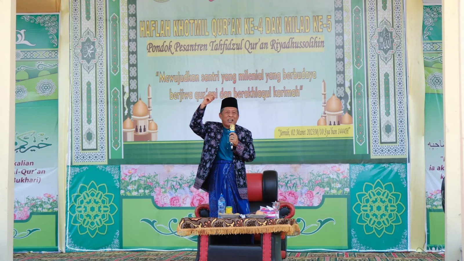 Jambi – Wakil Gubernur Jambi, Abdullah Sani menghadiri kegiatan Haflah Khotmil Qur’an dan Milad ke-5 Ponpes Tahfizul Quran Riyadhussobhin yang dilaksanakan di Desa Jernih, Kecamatan Air Hitam, Sarolangun, Rabu, 2 Maret 2023.