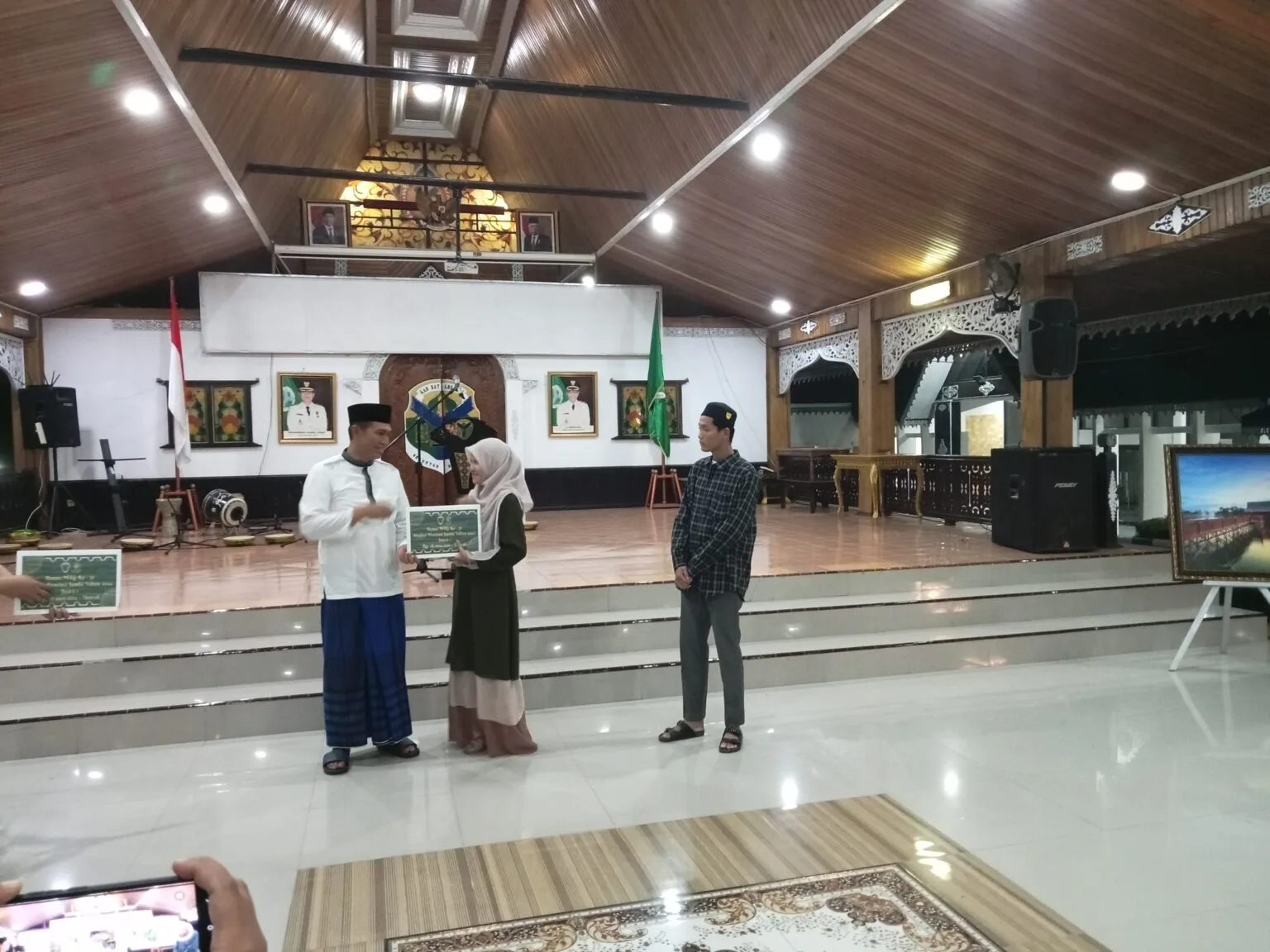 Bupati Batanghari Menyerahkan Bonus Kepada Kafilah MTQ yang Mendapatkan Juara