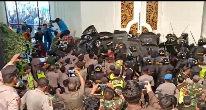 Jambi – Aksi demo mahasiswa menolak Undang-undang (UU) Cipta Kerja (Ciptaker) di gedung DPRD Provinsi Jambi berujung ricuh. Mahasiswa memaksa masuk ke gedung dewan hingga terlibat aksi saling dorong dengan polisi.