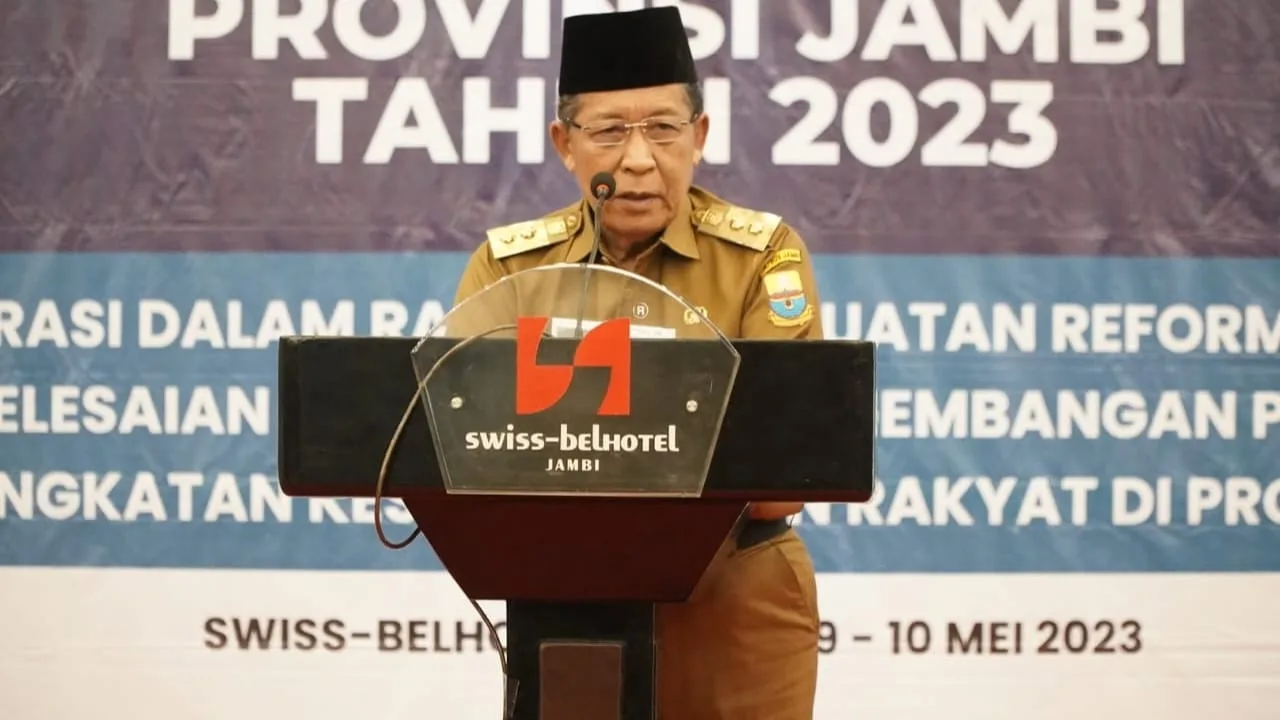 Pernyataan ini disampaikan Wagub saat membuka Rapat Koordinasi Gugus Tugas Reforma Agraria Provinsi Jambi tahun 2023 yang diselenggarakan di Swiss Bel hotel pada Selasa, 9 Mei 2023.