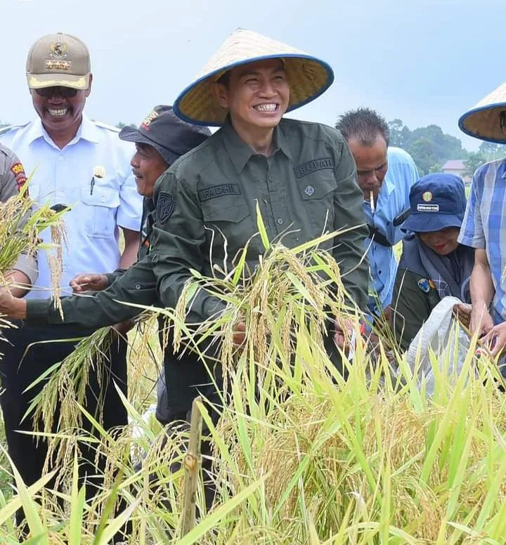 Batanghari – Bupati Batanghari, Muhammad Fadhil Arief, S.E., menghadiri kegiatan Panen Raya Padi Sawah bersama Kelompok Tani Tekat Jaya dan Tekat Makmur di Desa Teluk Leban, Kecamatan Maro Sebo Ulu, Kabupaten Batanghari