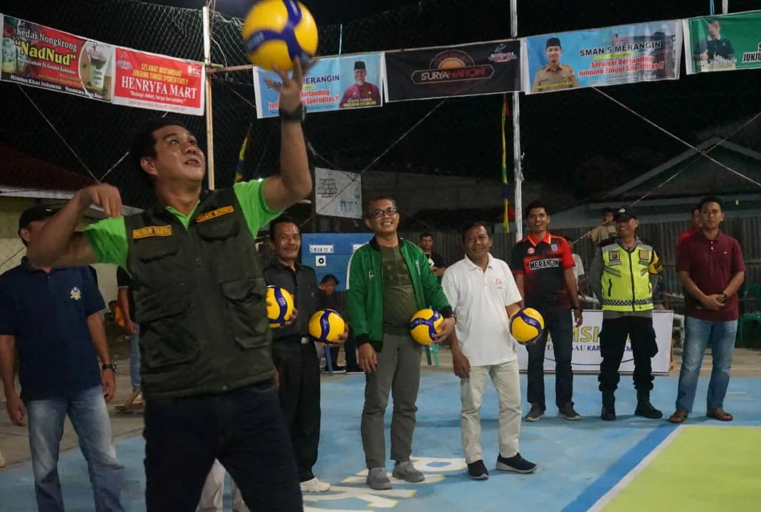 Bangko – Wakil Bupati Merangin, Nilwan Yahya didamping bersama Kadis Pariwisata, Pemuda dan Olahraga Sukoso, membuka secara resmi Turnamen Volly Pakamura Cup II Tahun 2023, di Desa Desa Rasau, Kecamatan Renah Pemenang pada Sabtu malam, 1 Juli 2023.