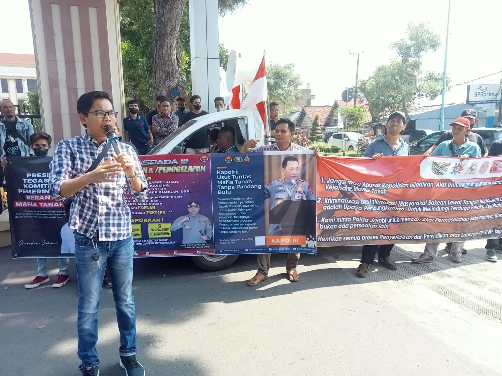 Menyikapi persoalan krusial di Provinsi Jambi tersebut, sejumlah aliansi lembaga swadaya masyarakat yang mengatasnamakan Aliansi Masyarakat Jambi Perangi Mafia Tanah pun langsung merespons dengan menggelar aksi demonstrasi di Polda Jambi, Kamis, 27 Juli 2023.