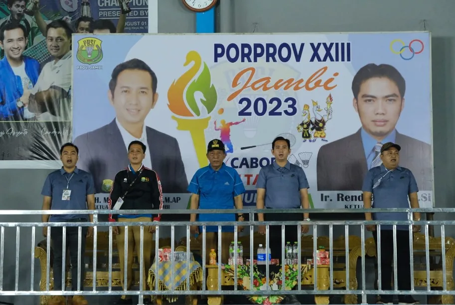 Jambi – Wakil Gubernur Jambi, Abdullah Sani secara resmi membuka Pertandingan Cabang Olahraga Bulutangkis pada Porprov XXIII (Ke-23) Provinsi Jambi Tahun 2023, bertempat di Hall Bulutangkis Kurniawan Pasir Panjang Danau Teluk, Kota Jambi, Senin, 10 Juli 2023.