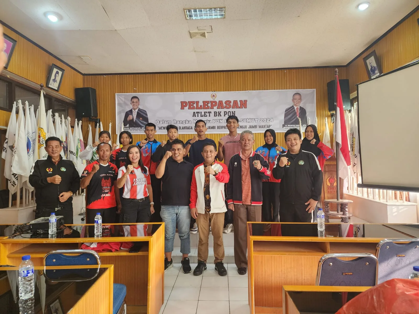 Turut hadir dalam acara pelepasan tersebut Ketua KONI Provinsi Jambi Budi Setiawan, Waketum II KONI Provinsi Jambi Hendri Hutabarat, Sekum KONI Provinsi Jambi, Mumtaz Mona.