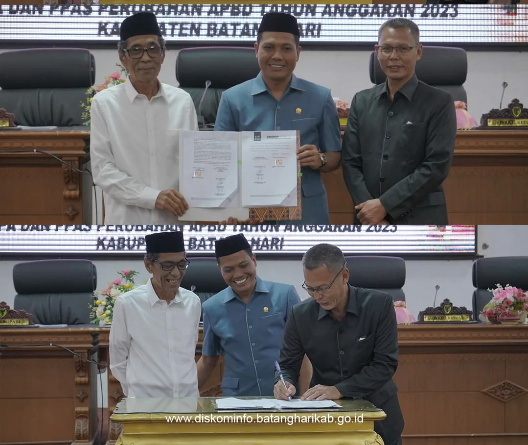 “Pemerintah mengucapkan terimakasih kepada pimpinan dan seluruh Anggota DPRD Batanghari yang telah menyetujui dan menandatangani Nota kesepakatan KUPA dan PPAS perubahan APBD Tahun Anggaran 2023,” ujar Wabup Bakhtiar.
