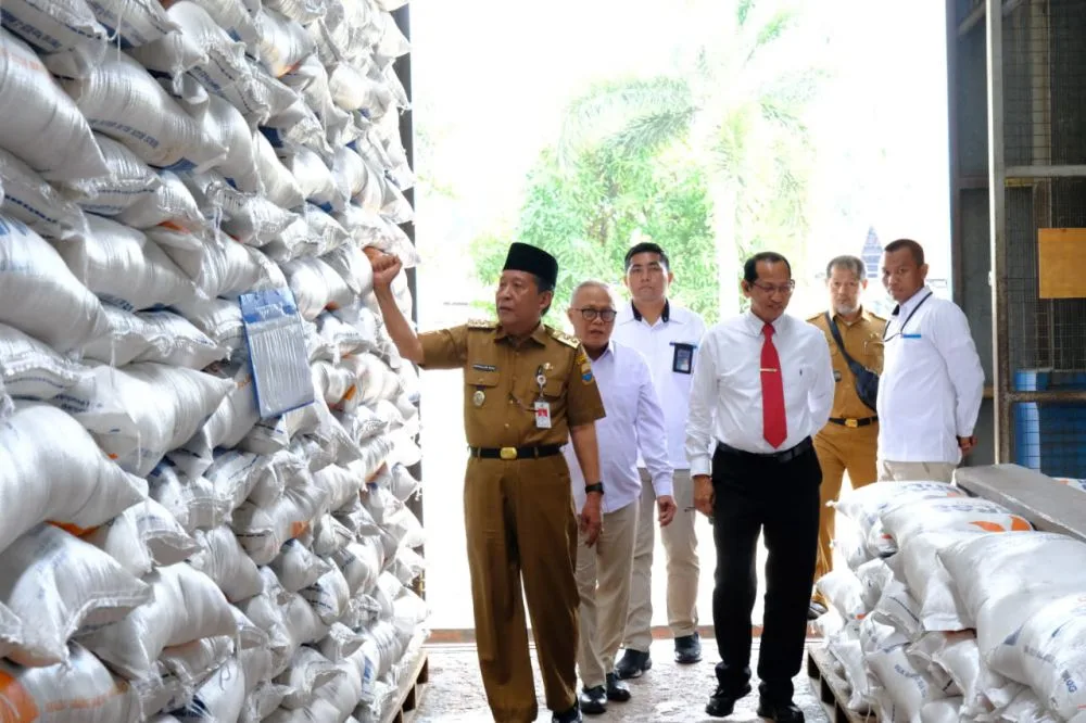Jambi – Wakil Gubernur Jambi H. Abdullah Sani melaunching Penyaluran Bantuan Pangan Cadangan Beras Pemerintah (CBP) Tahun 2023 Tahap II di Komplek Pergudangan Bulog Pasir Putih, Kota Jambi, Senin, 11 September 2023.