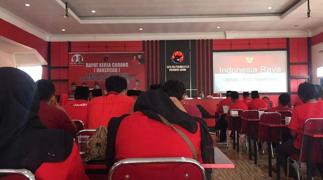 DETAIL.ID, Jambi – DPD PDI Perjuangan menggelar rapat kerja cabang di hari pertama kampanye Pemilu 2024 di sekretariat DPD PDI Perjuangan Provinsi Jambi pada Selasa, 28 November 2023.