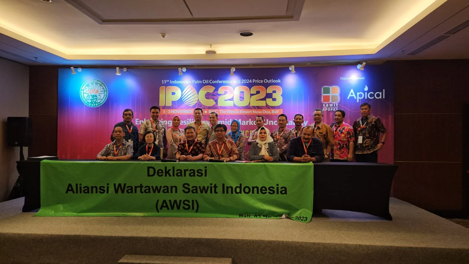 DETAIL.ID, Nusa Dua – Puluhan wartawan dari berbagai media di tanah air mendeklarasikan Aliansi Wartawan Sawit Indonesia (AWSI) di sela pelaksanaan Indonesian Palm Oil Conference (IPOC) and 2024 Price Outlook ke-19 di Bali International Convention Center (BICC), Nusa Dua Bali pada Jumat, 3 November 2023.