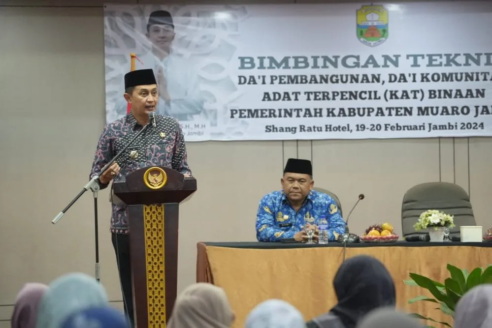 Muarojambi – Penjabat Bupati Muarojambi, Bachyuni Deliansyah,SH.MH membuka Bimbingan Teknis bagi Da’i/Ustadz/Ustadzah Se Kabupaten Muarojambi Tahun 2024. Bimbingan Teknis (Bimtek) dilaksanakan di Hotel Shang ratu, Senin malam, 19 Februari 2024.