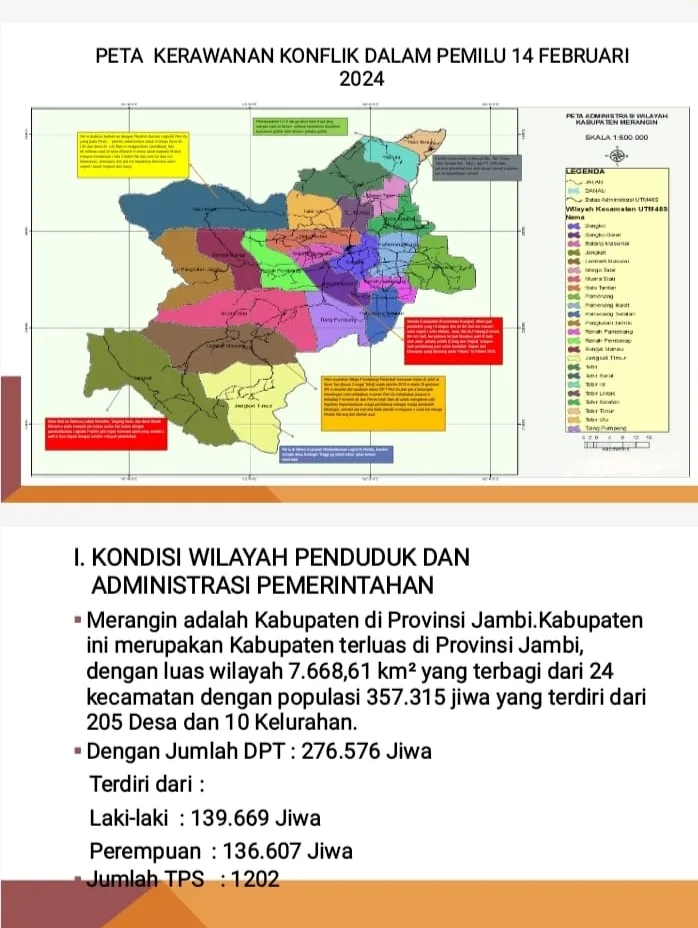 DETAIL.ID, Merangin – Menjelang Pemilihan Umum yang bakal digelar pada 14 Februari mendatang, dari 24 kecamatan yang ada di Kabupaten Merangin setidaknya ada dua wilayah yang dipetakan rawan dalam pemilihan.