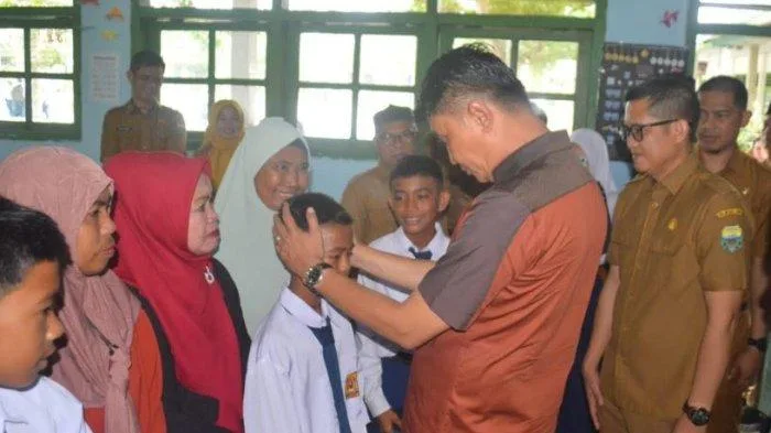 Sengeti – Pj Bupati Muarojambi Bachyuni Deliansyah menyalurkan bantuan Zakat, Infak dan Shadaqah (ZIS) BAZNAS kepada siswa kurang mampu di SMPN 6 Muarojambi, Senin, 5 Februari 2024.