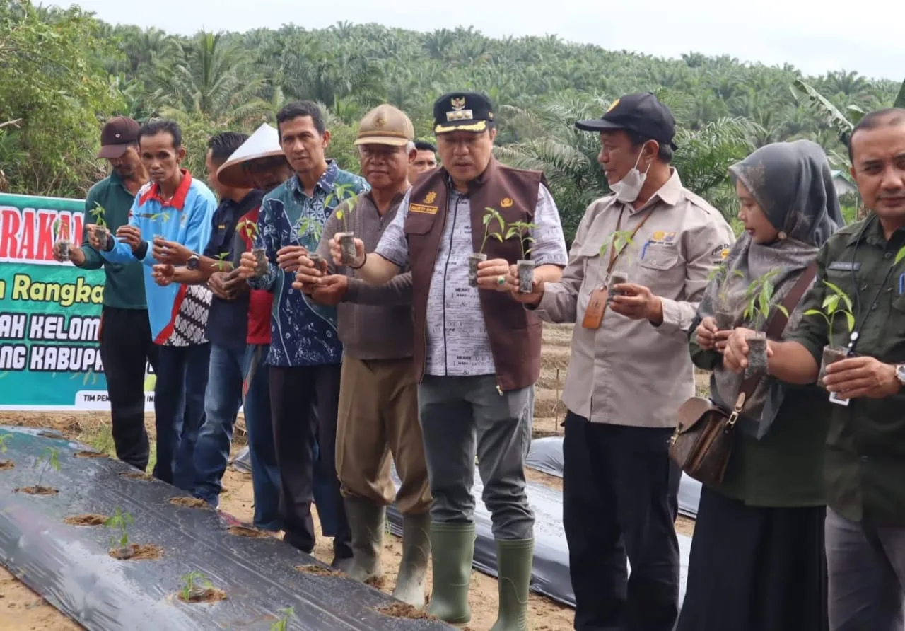 DETAIL.ID, Merangin – Pj Bupati Merangin, H. Mukti didampingi para kepala Organisasi Perangkat Daerah (OPD) terkait dan para Camat, mencanangkan Gerakan Tanam Cabe Serentak yang dipusatkan di Desa Tanjung Benuang Kecamatan Pamenang Selatan pada Kamis, 29 Februari 2024.