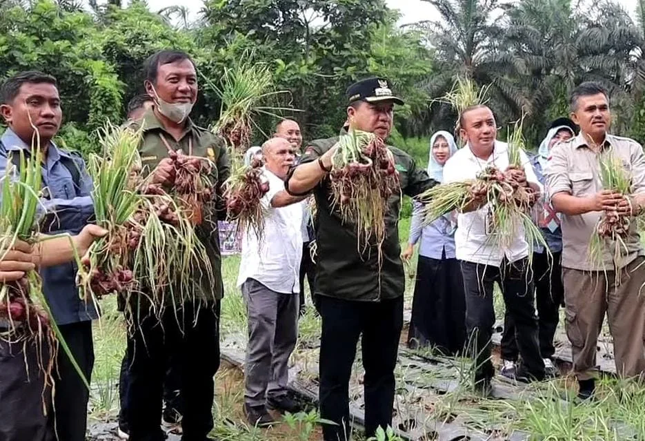 DETAIL.ID, Merangin – Pj Bupati Merangin H Mukti dan rombongan melakukan panen perdana bawang merah di lahan seluas dua hektare milik Kelompok Tani Bina Darma, di Kelurahan Pematang Kandis Bangko pada Rabu, 28 Februari 2024.