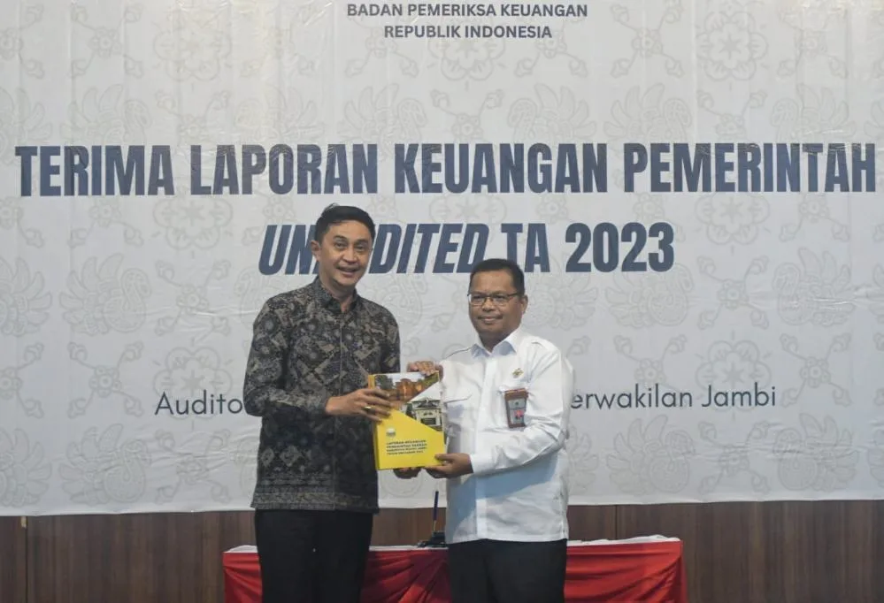Penyerahan laporan keuangan unaudited tahun anggaran 2023 didahului dengan penandatanganan berita acara serah terima. Kepala Perwakilan BPK Perwakilan Jambi, Paula Henry Simatupang, dalam sambutannya menyampaikan apresiasi kepada Pemerintah Daerah, Kabupaten / kota karena telah menyerahkan LKPD tahun anggaran 2023 pada maret 2024.