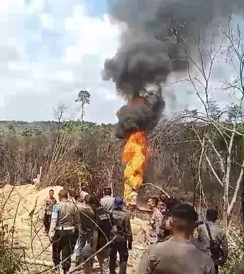 Api Kembali Berkobar di Lokasi Ilegal Drilling Kawasan Taman Hutan Raya Sultan Thaha Syaifuddin