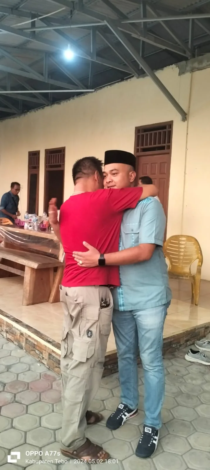 Kedatangan Agus Rubiyanto beserta rombongan langsung disambut hangat oleh keluarga besar Ketua MPC Pemuda Pancasila ini. Dalam kesempatan ini pula, H. Bujang Awi dan keluarga besarnya tampak begitu akrab bercengkrama dengan bakal calon Bupati Tebo 2024 – 2029 tersebut.