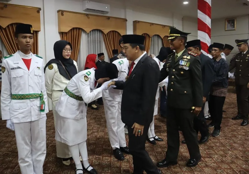 Merangin – Penjabat (Pj) Bupati Merangin, H Mukti mengukuhkan sebanyak 32 orang anggota Pasukan Pengibar Bendera Pusaka (Paskibraka) tahun 2024 Kabupaten Merangin yang berlangsung di Auditorium rumah dinas Bupati Merangin pada Kamis malam, 15 Agustus 2024.