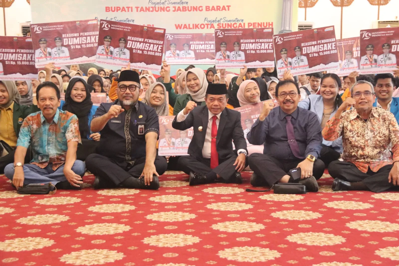 “Selamat saya sampaikan kepada Bapak, Ibu, Saudara, dan Saudari sekalian penerima Program Bantuan Beasiswa Dumisake Pemerintah Provinsi Jambi yang hari ini secara simbolis akan diterima oleh para penerima. Pada tahun 2024, Penerima Program Bantuan Beasiswa Dumisake S1 kurang mampu/miskin dan berprestasi sejumlah 300 orang, dan Penerima Program Beasiswa Dumisake S3 Luar Negeri dan Dalam Negeri sejumlah 76 orang,” ujar Gubernur Al Haris.
