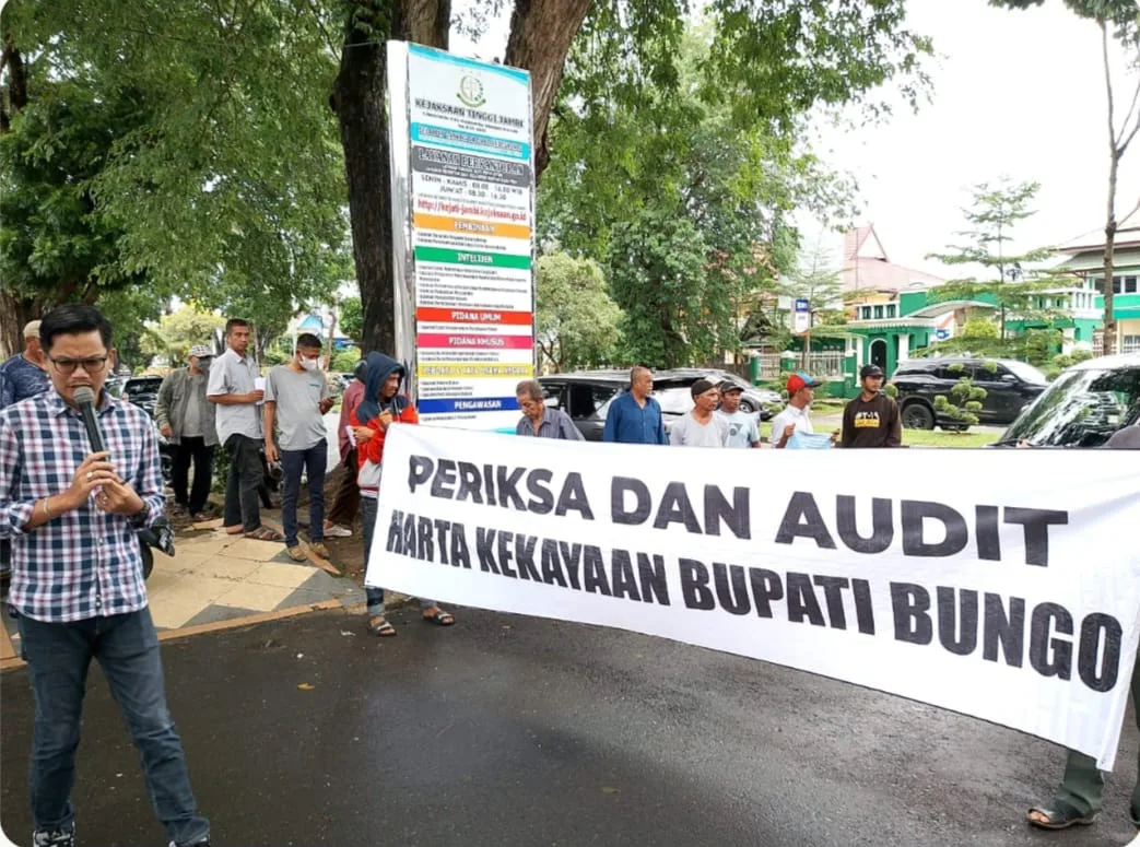 Adapun tuntutan mereka kepada Kepala Kejaksaan Tinggi Jambi untuk untuk segera melakukan koordinasi dengan Jaksa Agung Muda Tindak Pidana Khusus di Jakarta untuk menelaah dan mempelajari laporan yang mereka sampaikan atas dugaan tindak pidana korupsi, penggelapan pajak, pencucian uang, yang diduga dilakukan oleh sejumlah pejabat di lingkup Pemerintah Kabupaten (Pemkab) Bungo.