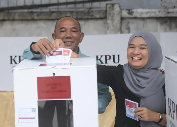 Pj Bupati Merangin dan Istri Gunakan Hak Pilihnya di TPS 04