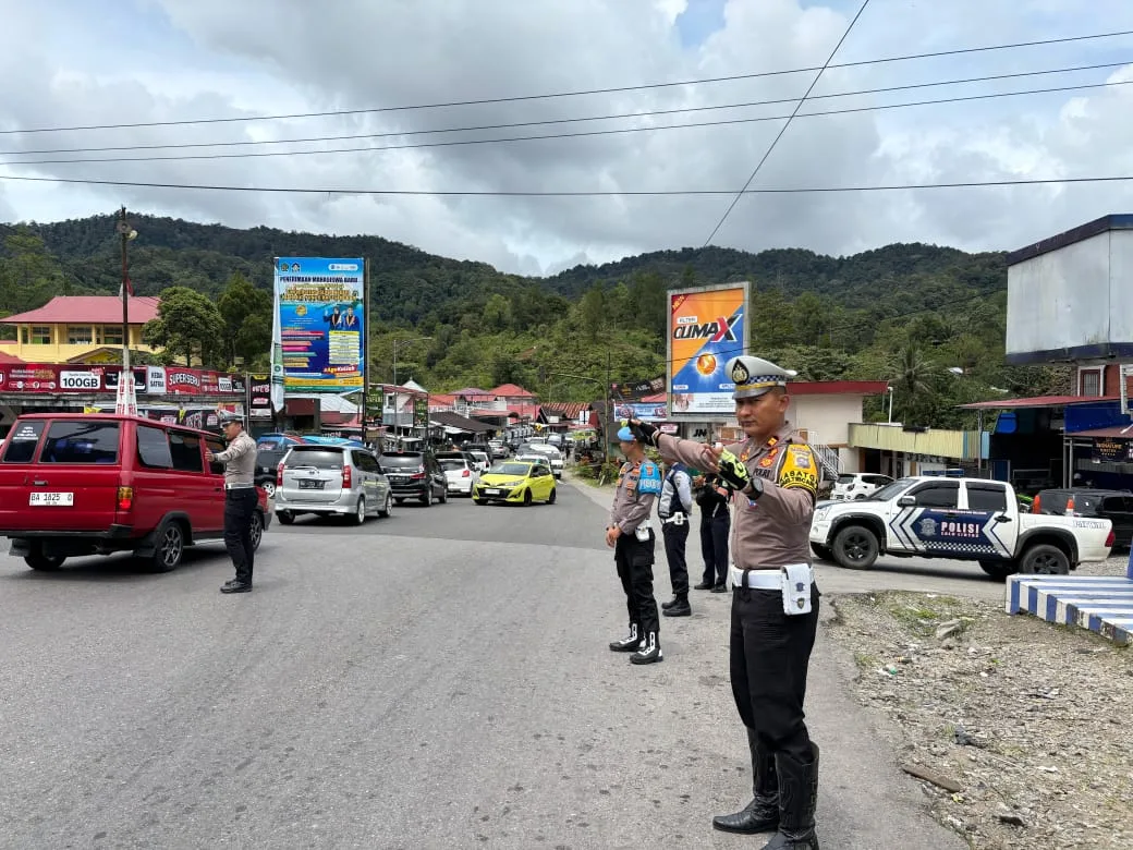 Personil Polres Solok Atasi Kemacetan Lalu Lintas pada Hari ke-5 Lebaran