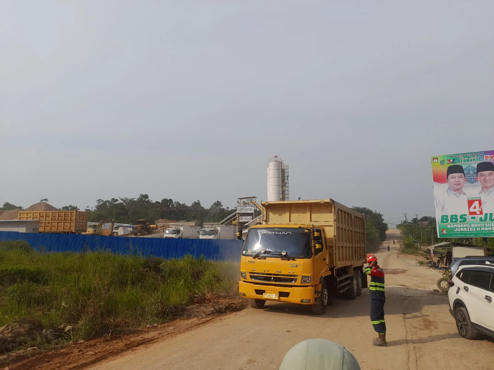 Di lokasi tanah milik Afrizal Hasyim terlihat ada satu unit alat berat (excavator) dan sekitar 4 unit mobil truk sedang antre menurunkan tanah ke lahan pribadi Afrizal Hasyim.