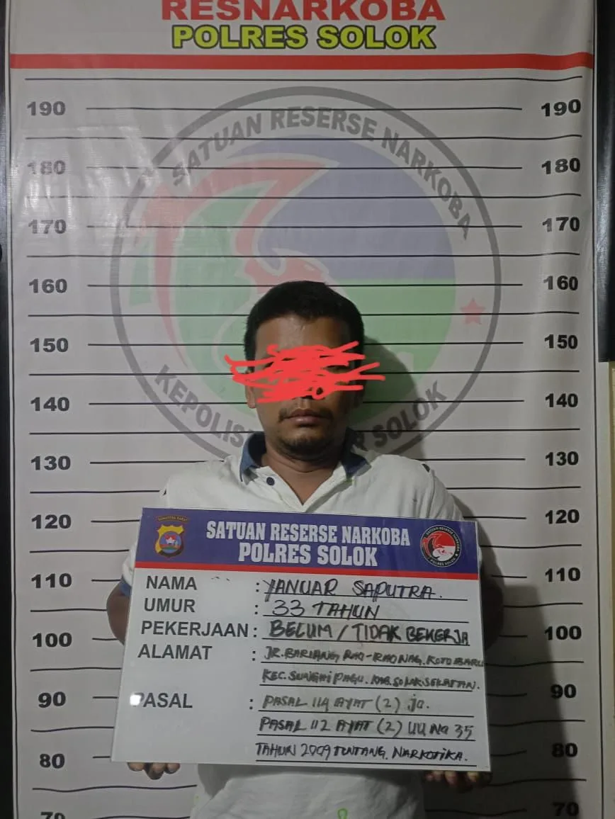 DETAIL.ID, Solok – Senin, 21 April 2025 pukul 18.45 WIB Kasat Resnarkoba Polres Solok, Iptu Rico Putra Wijaya, S.H., bersama Tim Spider Polres Solok melakukan penangkapan terhadap Pelaku penyalahgunaan narkotika jenis sabu-sabu di Jorong Lubuk Selasih, Nagari Batang Barus, Kecamatan Gunung Talang, Kabupaten Solok.