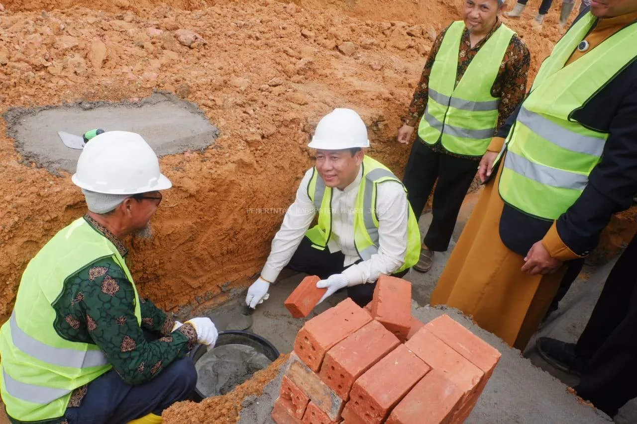 Usai sambutan, Bupati lakukan peletakan batu pertama pembangunan masjid, yang disaksikan oleh ketua yayasan, seluruh panitia, serta tamu undangan yang hadir.