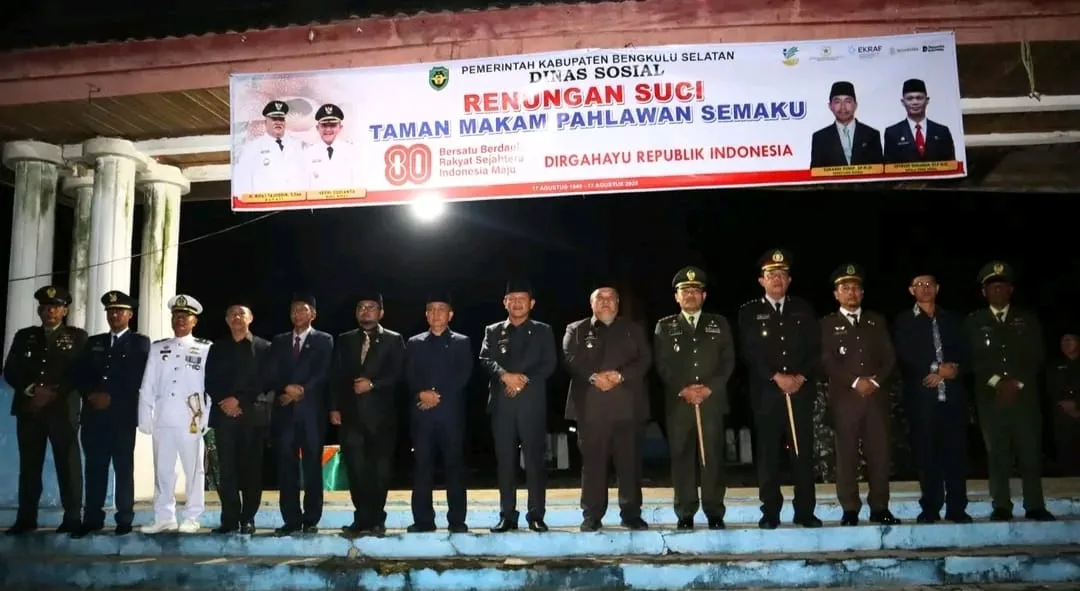 Bengkulu Selatan – Menyambut Hari Peringatan Proklamasi Kemerdekaan Republik Indonesia yang ke-80, Pemerintah Daerah Kabupaten Bengkulu Selatan melaksanakan Renungan Suci yang bertempat di Taman Makam Pahlawan (TMP) Semaku, pada Sabtu, 17 Agustus 2028 dini hari.