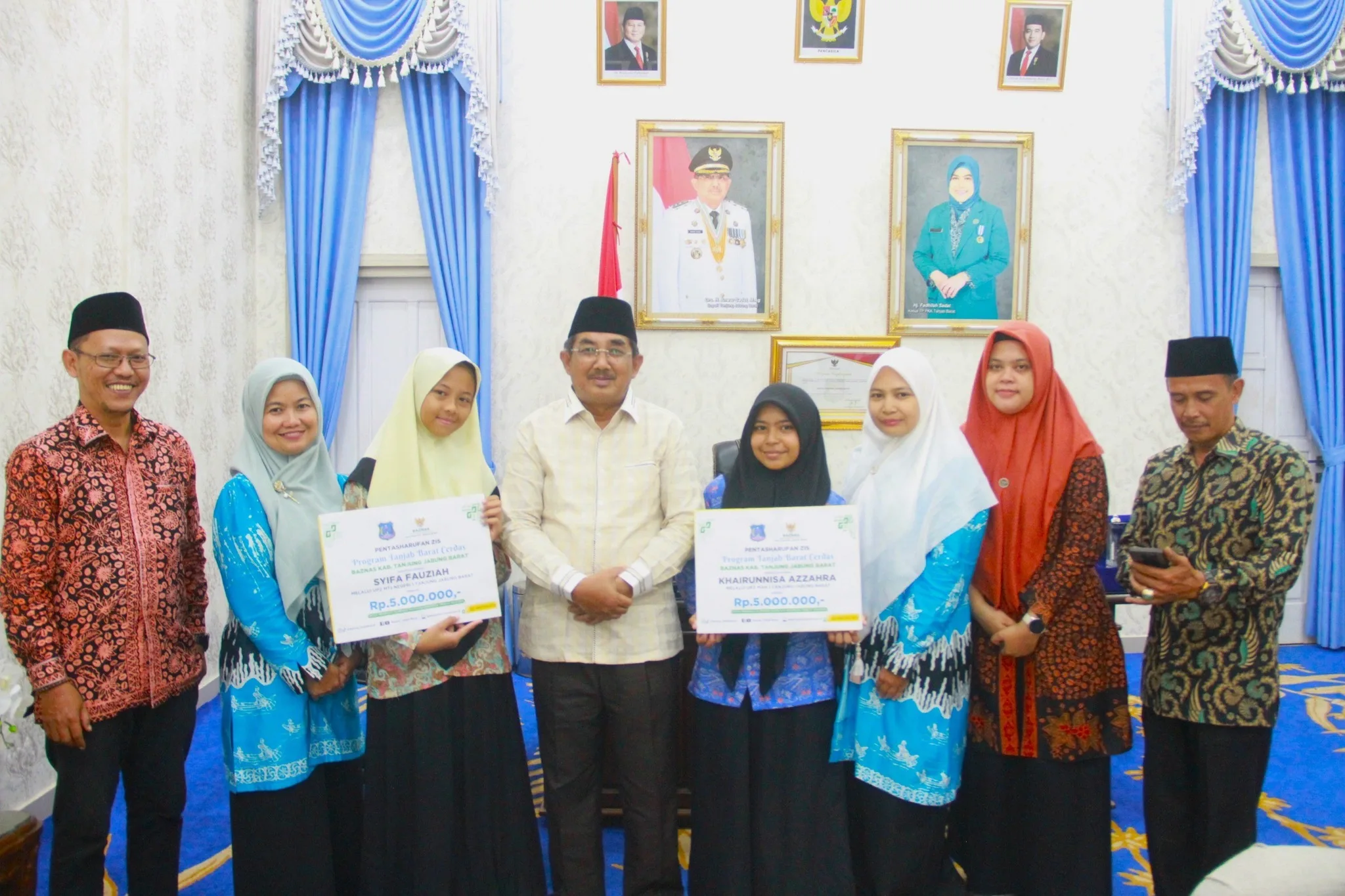 Sebagai bentuk motivasi dan apresiasi nyata, Bupati Anwar Sadat menyerahkan bantuan pendidikan. Bantuan ini disalurkan melalui program unggulan Tanjab Barat Cerdas, yang sumber dananya berasal dari infaq dan sedekah yang dihimpun oleh Unit Pengumpulan Zakat (UPZ) dan dikelola oleh BAZNAS Tanjab Barat.