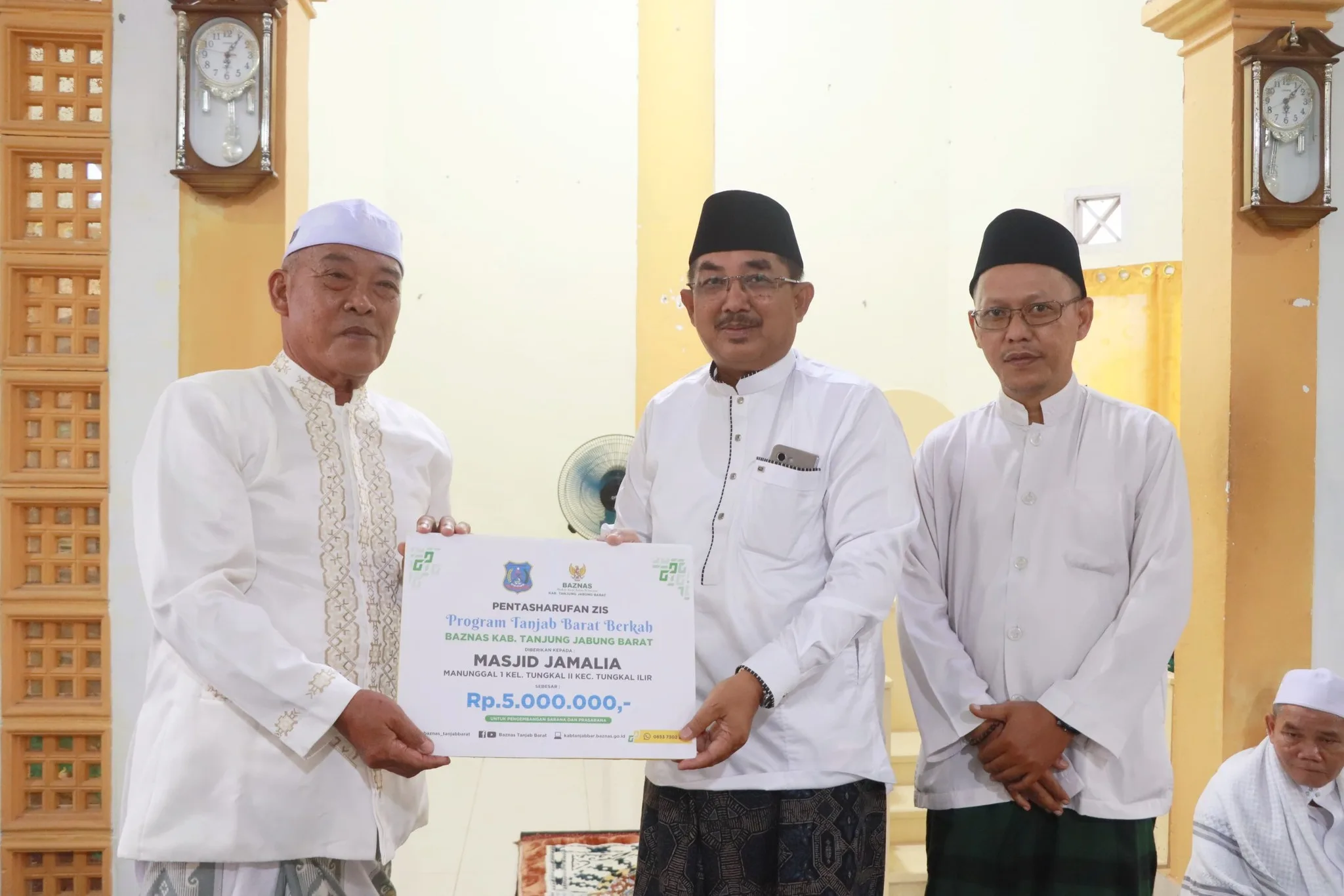 Sebagai bentuk kepedulian sosial, Bupati menyerahkan bantuan Tasharruf ZIS sebesar Rp5 juta untuk Masjid Jamalia, santunan kepada 10 anak yatim dan 10 takmir masjid, serta paket sembako untuk 20 lansia dhuafa. Selain itu, bantuan program penanganan stunting turut disalurkan kepada masyarakat.