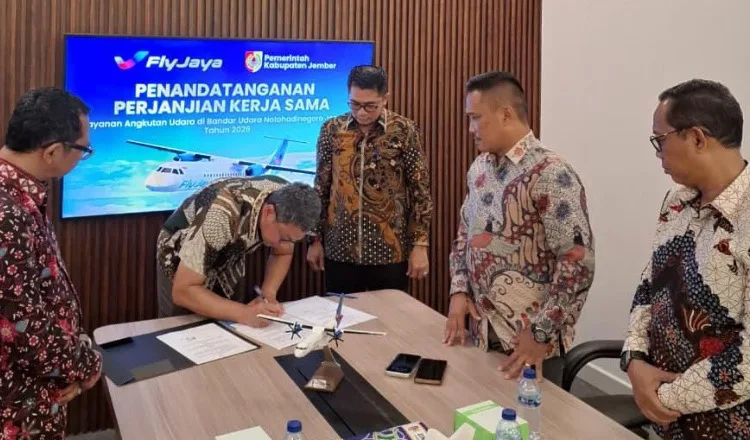 Penandatanganan MoU antara Pemkab Jember dan Maskapai Fly Jaya pada Kamis, 8 Januari 2026). (Foto: Teamwork)