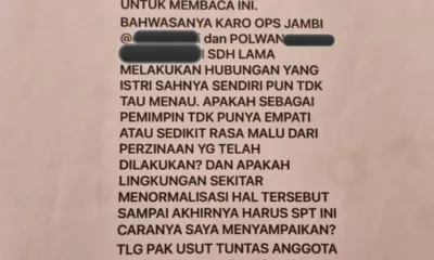 DETAIL.ID, Jambi – Alur cerita kasus dugaan perselingkuhan oknum PJU Polda Jambi dengan salah seorang Polwan, terus bergulir. Terbaru informasi dihimpun bahwa Divisi Profesi dan Pengamanan...
