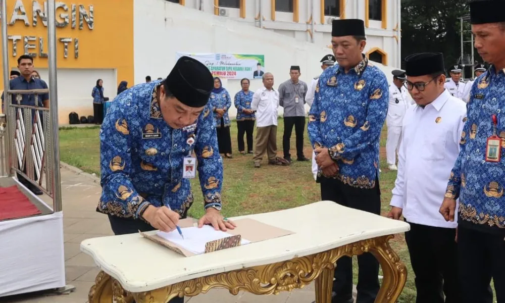 Merangin – Pj Bupati Merangin, H. Mukti memimpin jalannya Apel Siaga untuk memastikan kesiapan anggota Satlinmas, khususnya saat melakukan pengamanan di Tempat Pemungutan Suara (TPS) bersama...