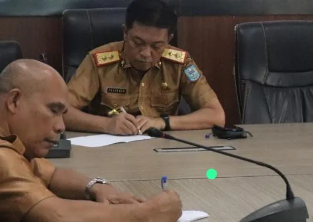 Jambi – Sekretaris Daerah (Sekda) Provinsi Jambi Dr. H. Sudirman, SH, MH bersama Ketua DPRD (Dewan Perperwakilan Rakyat Daerah) Provinsi Jambi M. Hafiz, Asisten II Setda...