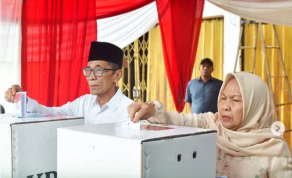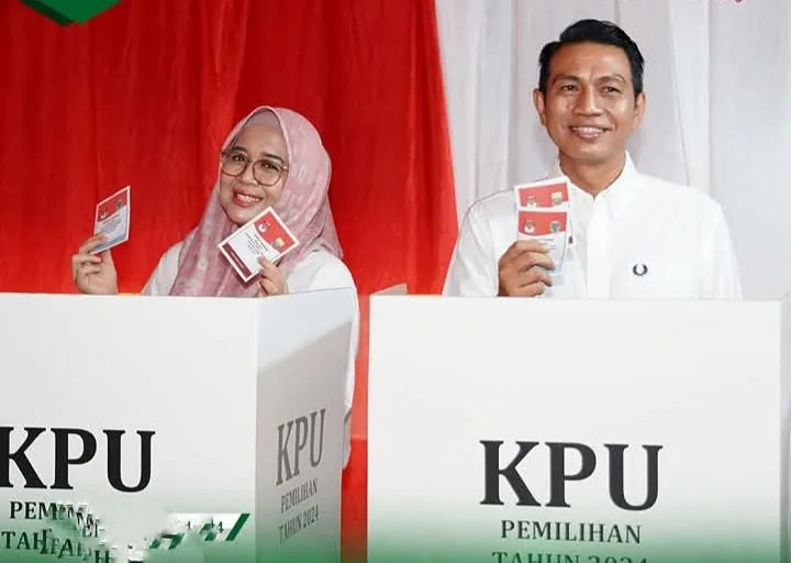 Batanghari – Bupati Batanghari, Muhammad Fadhil Arief bersama sang istri, Zulva Fadhil menggunakan hak pilih nya pada pemilihan umum Kepala Daerah (Pilkada) di Tempat Pemungutan Suara...