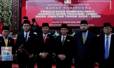 Jambi – Sebanyak 55 anggota DPRD Provinsi Jambi telah dilantik pada pagi, 9 September 2024 M. Hafiz ditunjuk sebagai Ketua DPRD Provinsi Jambi sementara, sedangkan Mazlan...