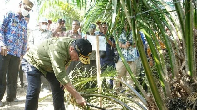 Muarojambi – Penjabat Bupati Kabupaten Muarojambi Drs. Raden Najmi mendampingi Gubernur Provinsi Jambi Dr. H. Al Haris S. Sos. M. H pada acara Panen Perdana Kelapa...
