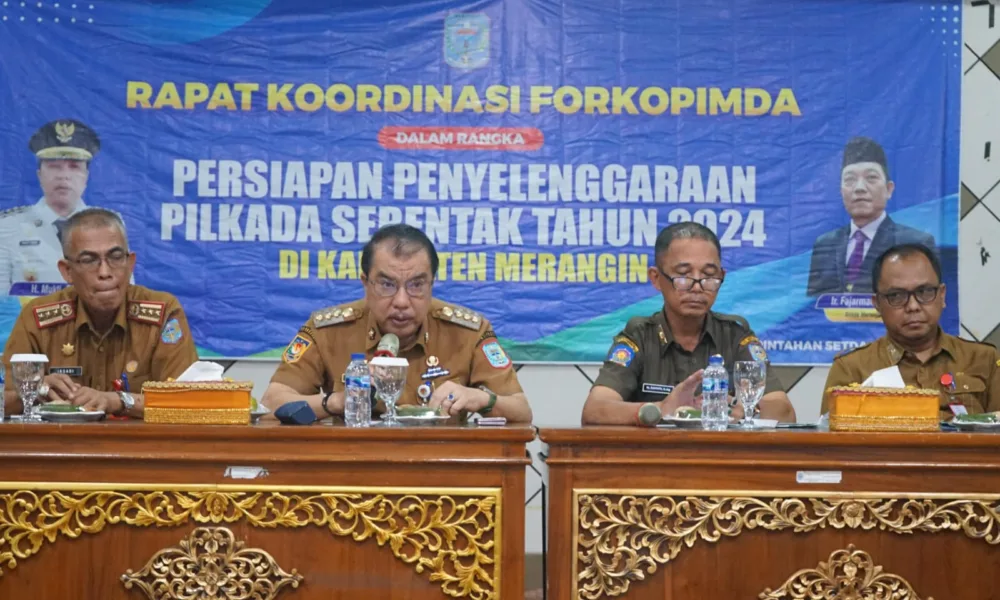 Merangin – Penjabat (Pj) Bupati Merangin, H. Mukti memimpin jalannya rapat koordinasi (Rakor) Forkopimda dalam rangka persiapan penyelenggaraan Pilkada Serentak 2024 di Kabupaten Merangin pada Senin,...