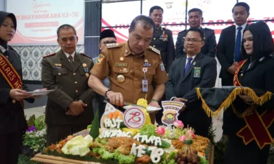 Merangin – Penjabat (Pj) Bupati Merangin, H. Mukti memberikan tumpeng kepada Kapolres Merangin, AKBP Ruri Roberto sebagai tanda ucapan selamat peringatan Hari Ulang Tahun (HUT) Bhayangkara...