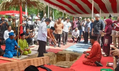Jambi – Al Haris awali proses peletakkan tiang pancang mega proyek Revitalisasi Kawasan Cagar Budaya Nasional (KCBN) Muarojambi di kawasan Candi Muarojambi, Kabupaten Muarojambi, Provinsi Jambi,...