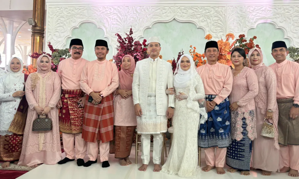 Jambi – Ketua DPRD Provinsi Jambi, Edi Purwanto bersama istri menghadiri akad nikah Esy Risdianti, putri sulung Gubernur Jambi Al Haris, Jumat, 19 April 2024. Proses...